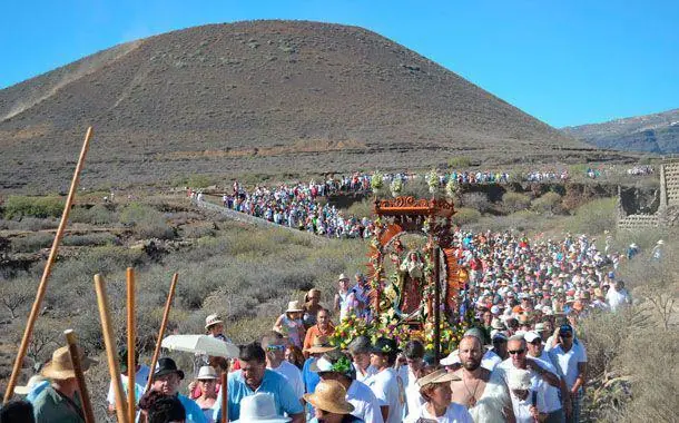 Marche religieuse et populaire vers la basilique de Candelaria en l’honneur de la Vierge patronne des Canaries. Des dizaines de milliers de fidèles participent chaque année.